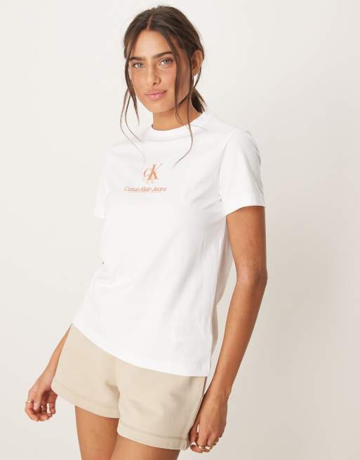 Calvin Klein Jeans - T-shirt à logo ombré - Blanc et pêche