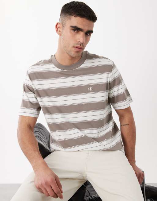 Calvin Klein Jeans - T-shirt à rayures - Beige et blanc