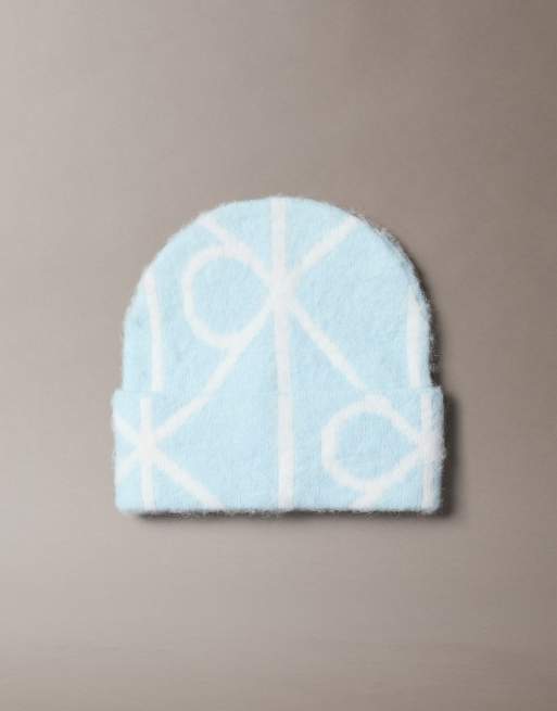 Calvin Klein - Bonnet effet brossé à imprimé emblème - Bleu givré