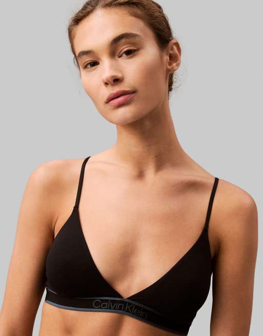 Calvin Klein - Brassière triangle en coton avec bande à logo ton sur ton - Noir