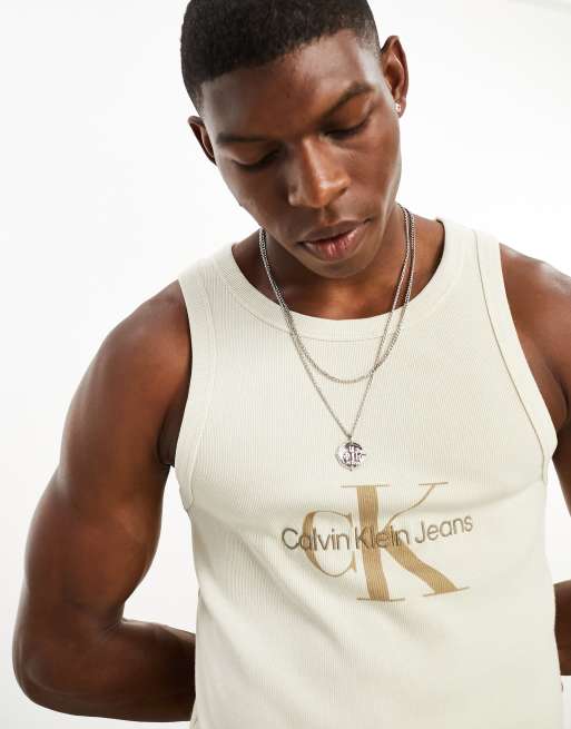 Calvin Klein - Débardeur côtelé à logo - Blanc