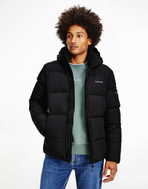 Calvin Klein - Doudoune en nylon froissé avec capuche amovible - Noir