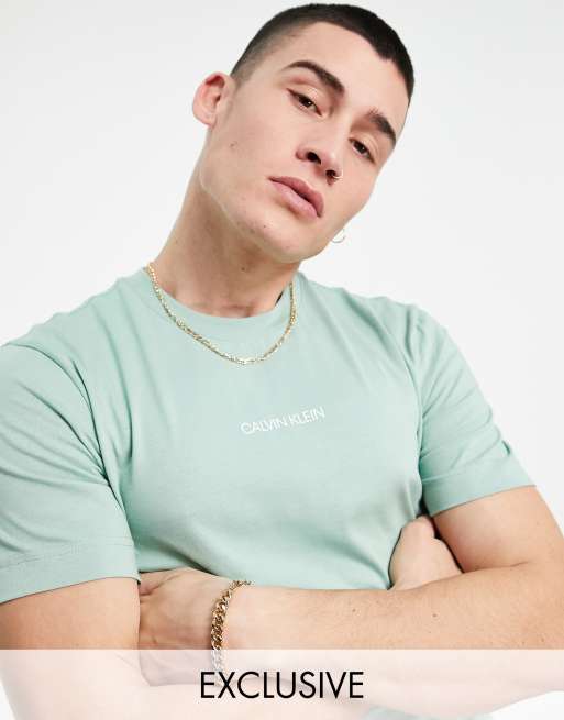 Calvin Klein - Exclusivité ASOS - T-shirt avec logo centré - Bleu sarcelle