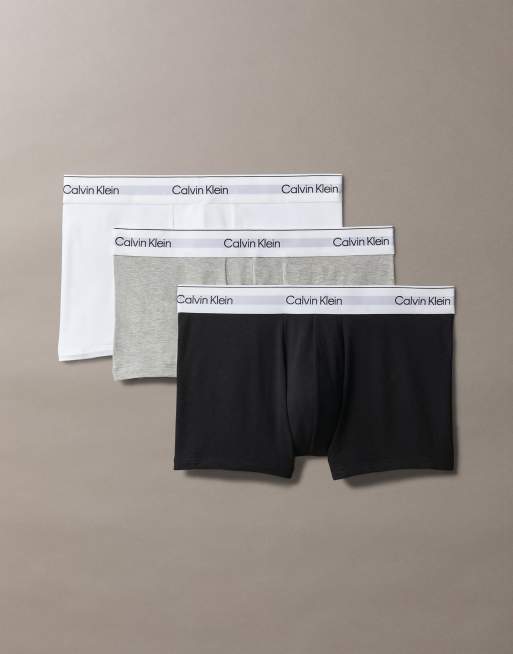 Calvin Klein - Icon Cotton Stretch - Lot de 3 boxers à taille basse - Blanc/gris/noir