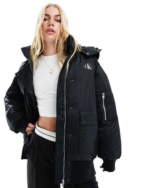 Calvin Klein Jeans - Bomber à capuche oversize - Noir