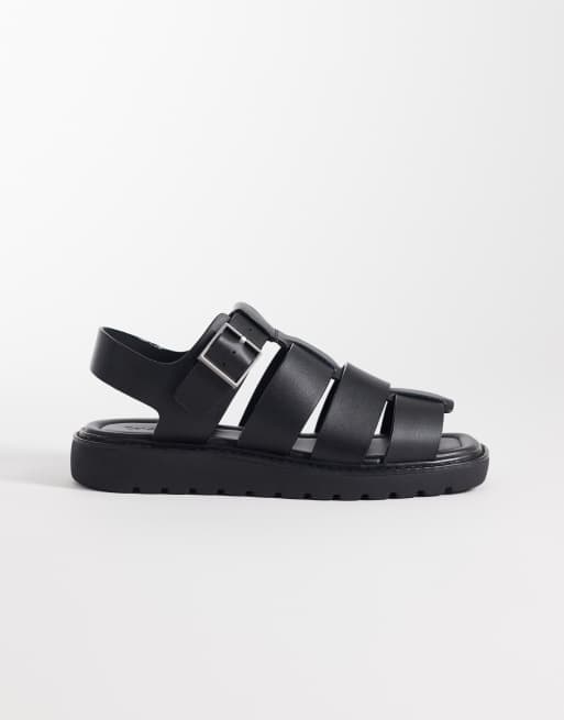 Calvin Klein Jeans - Sandales en cuir style pêcheur à bout carré - Noir
