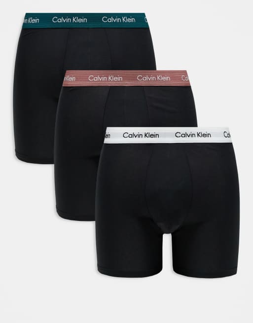 Calvin Klein - Lot de 3 boxers en coton stretch - Blanc/sarcelle/mauve