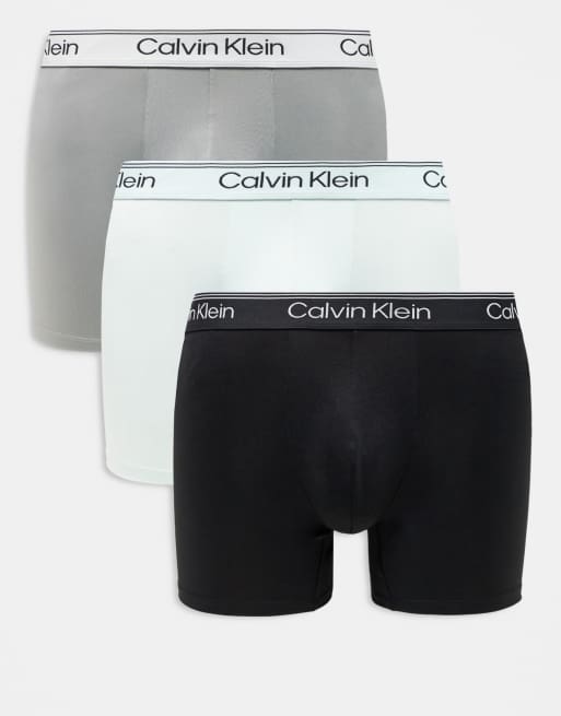 Calvin Klein - Lot de 3 boxers en microfibre stretch - Noir/gris/aigue-marine