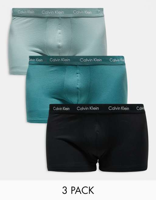 Calvin Klein Plus - Cotton Stretch - Lot de 3 boxers taille basse - Vert/noir