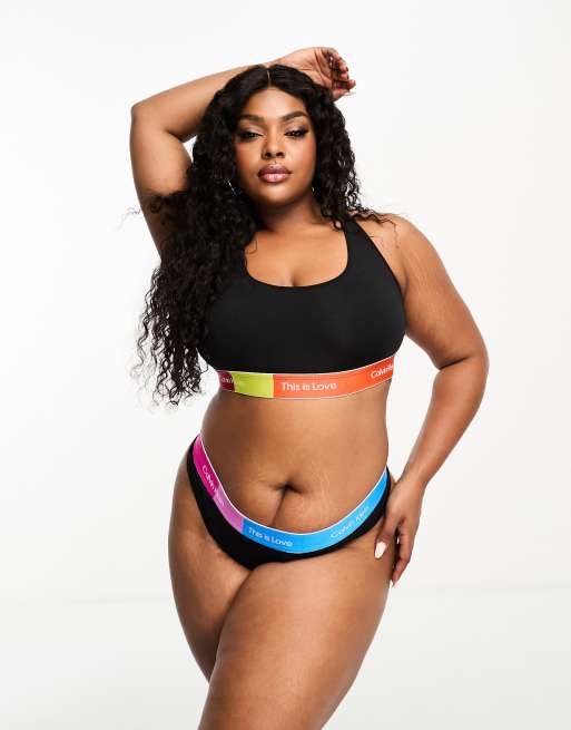Calvin Klein Plus - Pride Collection - String à détail arc-en-ciel contrastant - Noir