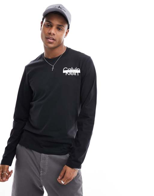 Calvin Klein - T-shirt à manches longues avec logo superposé - Noir