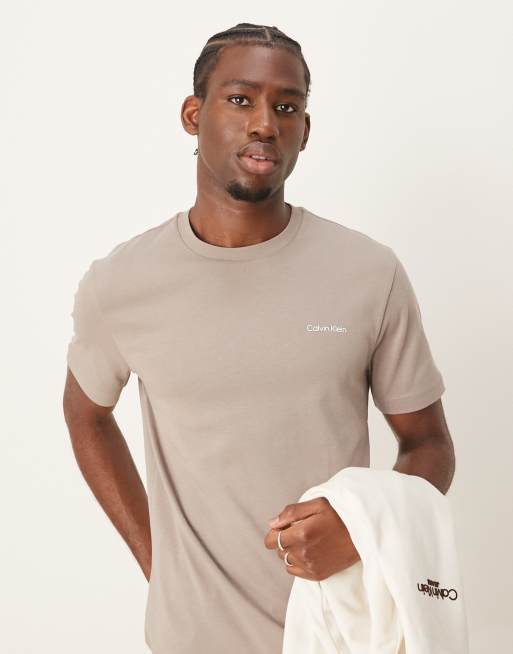 Calvin Klein - T-shirt effet entrelacé à petit logo - Beige