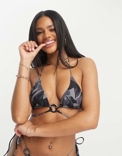 Candypants - Haut de bikini triangle enveloppant avec imprimé abstrait - Noir