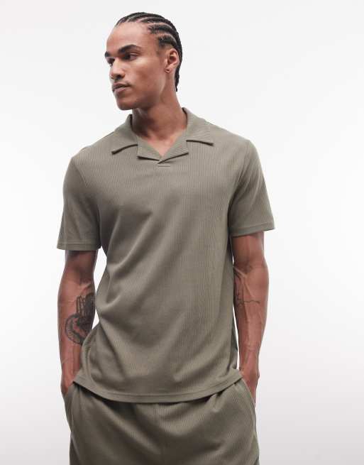 CAPO - Chemise d'ensemble côtelée à rayures avec col à revers - Vert