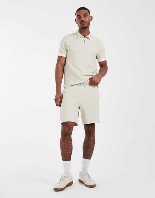 CAPO - Polo d'ensemble à col zippé et bande texturée - Beige clair