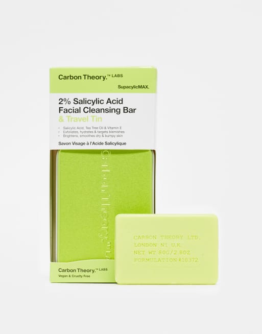 Carbon Theory - Pain nettoyant visage avec 2 % d'acide salicylique et boîte de voyage en fer