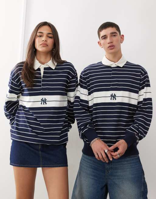 Champion - Chemise de rugby unisexe à rayures - Bleu marine