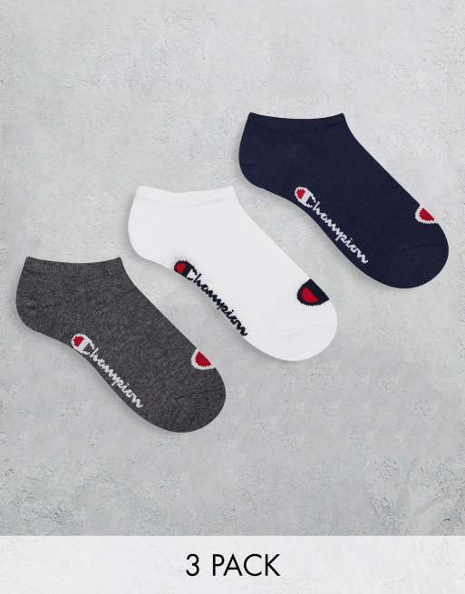 Champion - Lot de 3 paires de socquettes - Bleu, blanc et gris