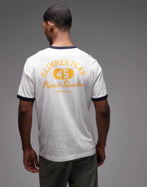 Champion - T-shirt imprimé à bordures contrastantes - Blanc cassé/noir