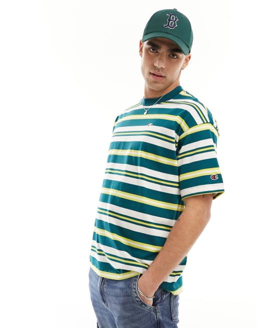 Champion - T-shirt rayé - Vert, jaune et blanc
