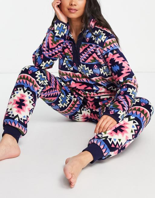 Chelsea Peer - Pull confortable en jacquard avec fermeture éclair sur le devant et jogger - Bleu marine
