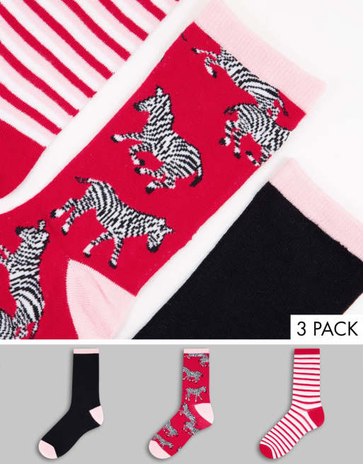 Chelsea Peers - Lot de 3 paires de chaussettes - Noir/imprimé zébré/rayures
