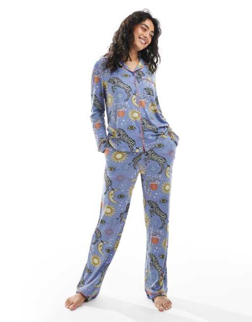 Exclusivité - Chelsea Peers - Ensemble avec pantalon et haut à manches longues et imprimé céleste - Lilas