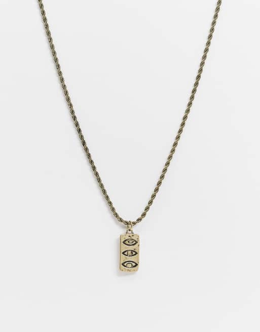 Classics 77 - Collier chaîne à pendentif œil rectangulaire gravé - Doré