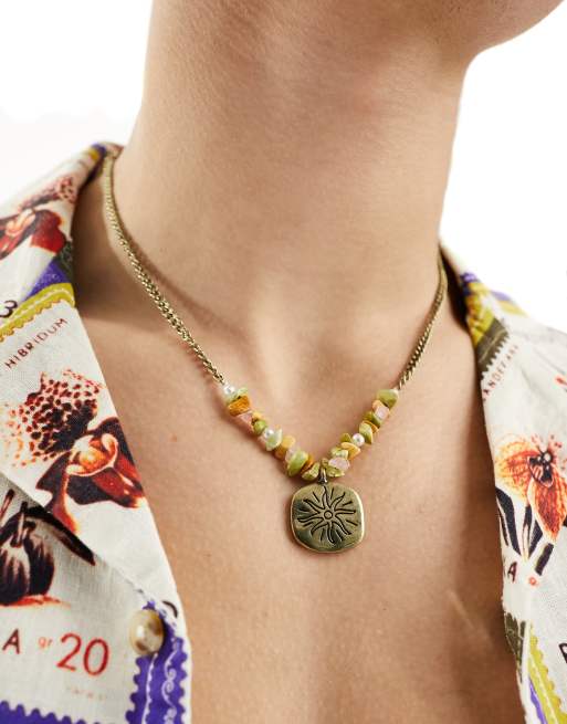 Classics 77 - Collier chaîne orné de perles avec pendentif soleil - Doré