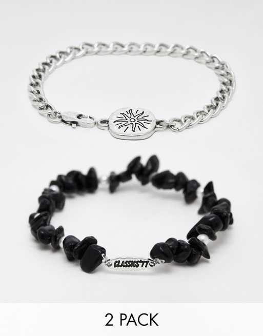 Classics 77 - Lot de 2 bracelets de perles et à maillons avec breloque soleil - Argenté