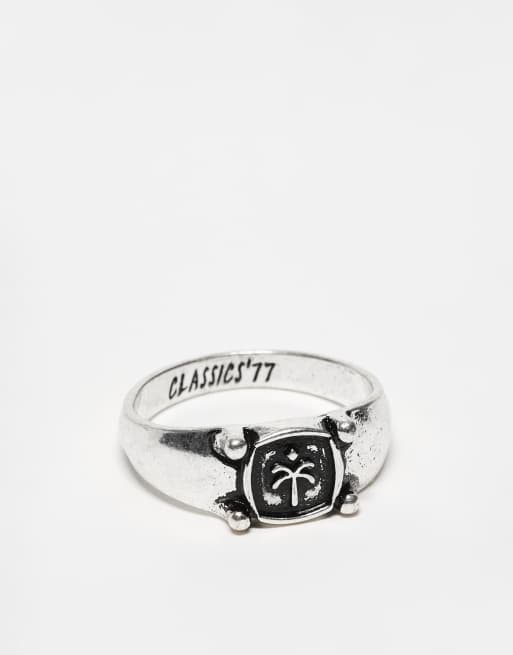 Classics 77 - Chevalière avec gravure de palmier - Argenté