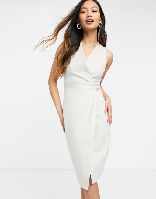 Closet London - Robe mi-longue portefeuille froncée - Taupe