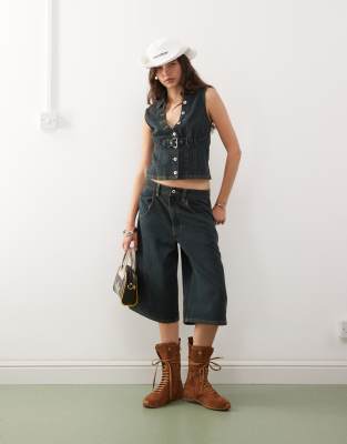 COLLUSION - Bermuda d'ensemble à taille basse style festival - Vert délavé