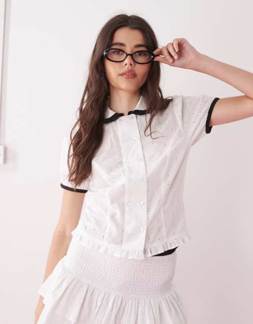 Collusion - Blouse d'ensemble en broderie anglaise - Blanc