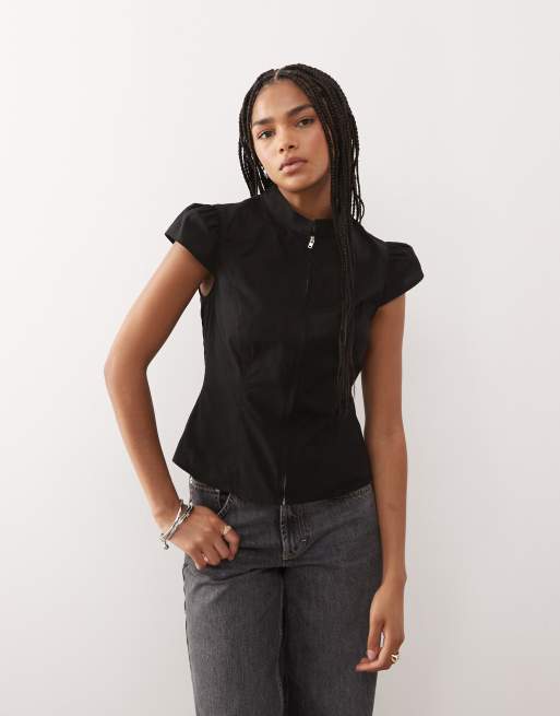 COLLUSION - Chemise ajustée à col montant et fermeture éclair - Gris