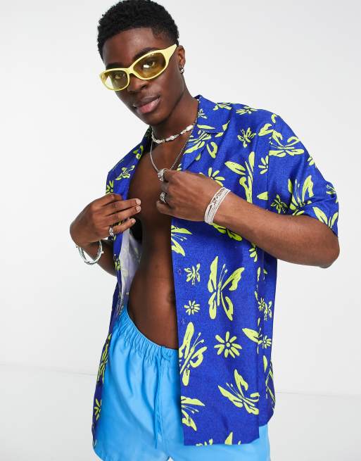 COLLUSION - Chemise de plage avec col à revers et imprimé papillon - Bleu