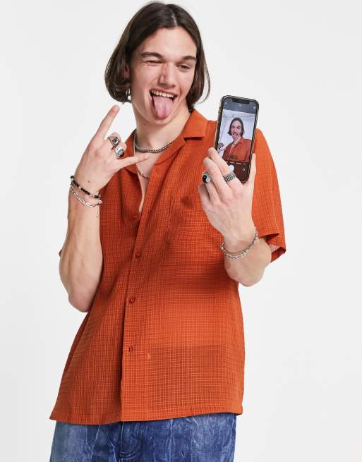 COLLUSION - Chemise d'été en tissu texturé gaufré - Rouille