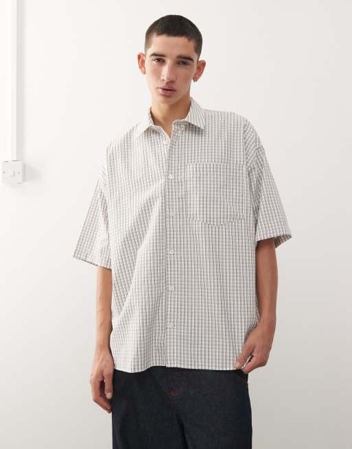 COLLUSION - Chemise oversize coupe carrée à manches courtes et carreaux - Tons neutres
