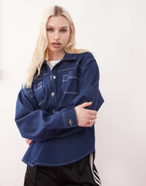 COLLUSION - Chemise oversize en jean - Délavage brut