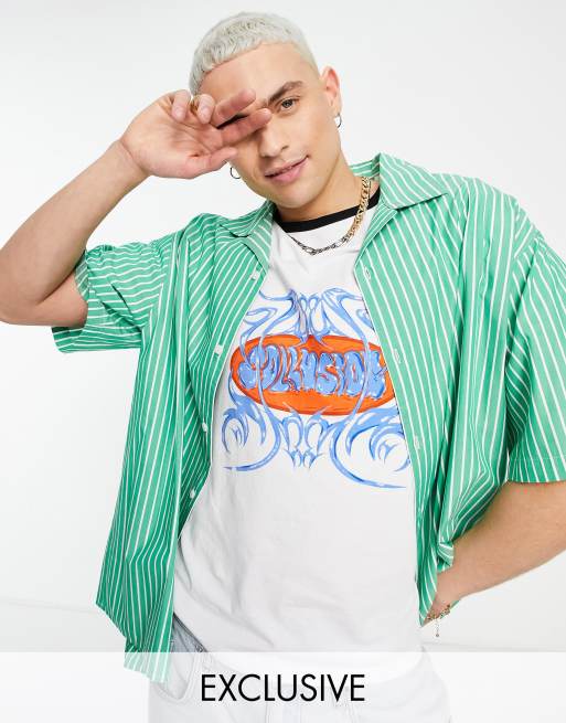 COLLUSION - Chemise oversize rayée avec col à revers - Vert