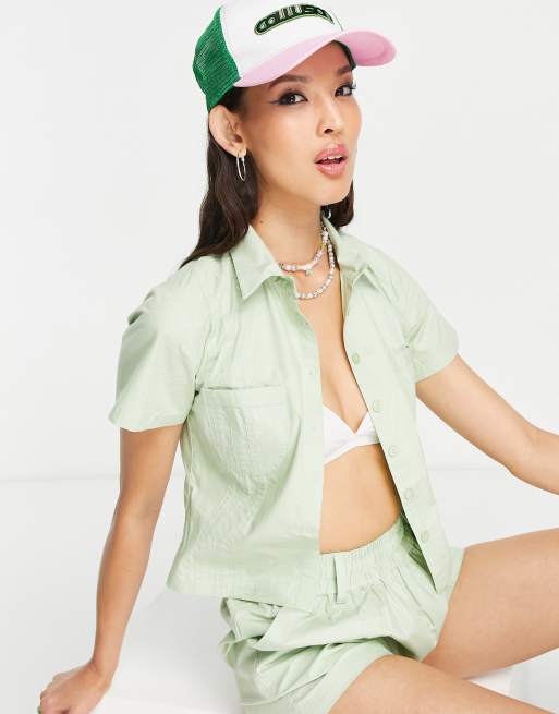COLLUSION - Chemise utilitaire d'ensemble en coton enduit - Vert sauge