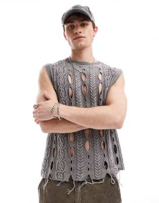 COLLUSION - Débardeur en maille à fini effet ultra usé - Gris délavé