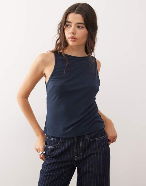 COLLUSION - Débardeur texturé à encolure bateau - Bleu marine