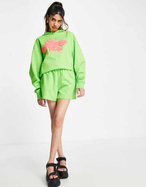 COLLUSION - Ensemble avec sweat à capuche oversize à imprimé hawaïen duveteux et short - Vert