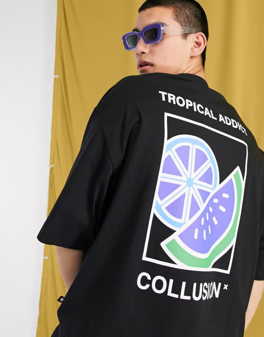COLLUSION - Ensemble avec t-shirt oversize et short en jersey à imprimé noir