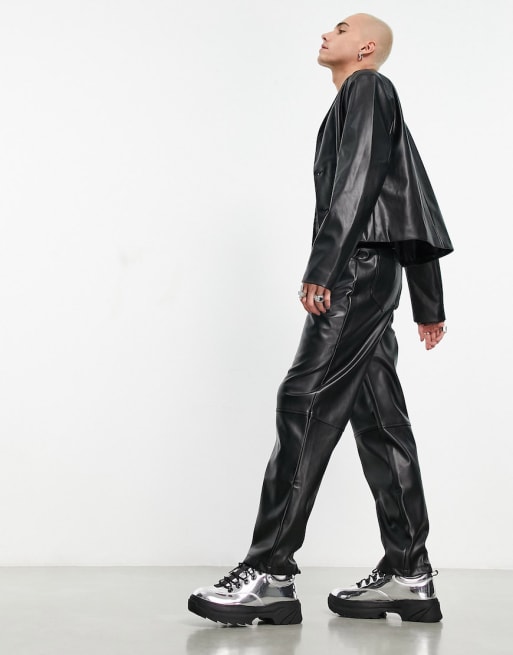 COLLUSION - Ensemble blazer et pantalon en imitation cuir - Noir - BLACK