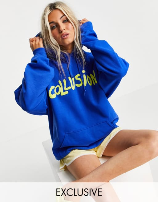 COLLUSION - Ensemble sweat à capuche griffé oversize et legging évasé près du corps - Bleu