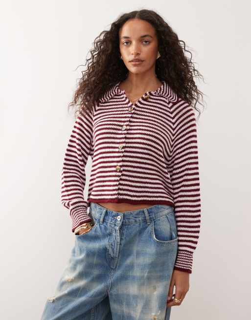 COLLUSION - Gilet en maille à rayures avec manches raglan - Rose