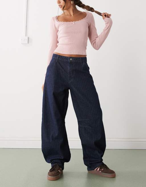 COLLUSION - Jean bouffant rayé à taille basse - Bleu