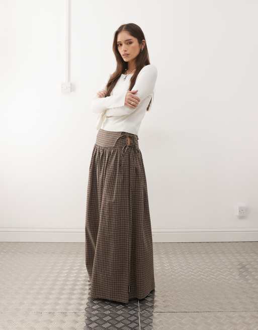 COLLUSION - Jupe longue à carreaux et taille basse - Gris